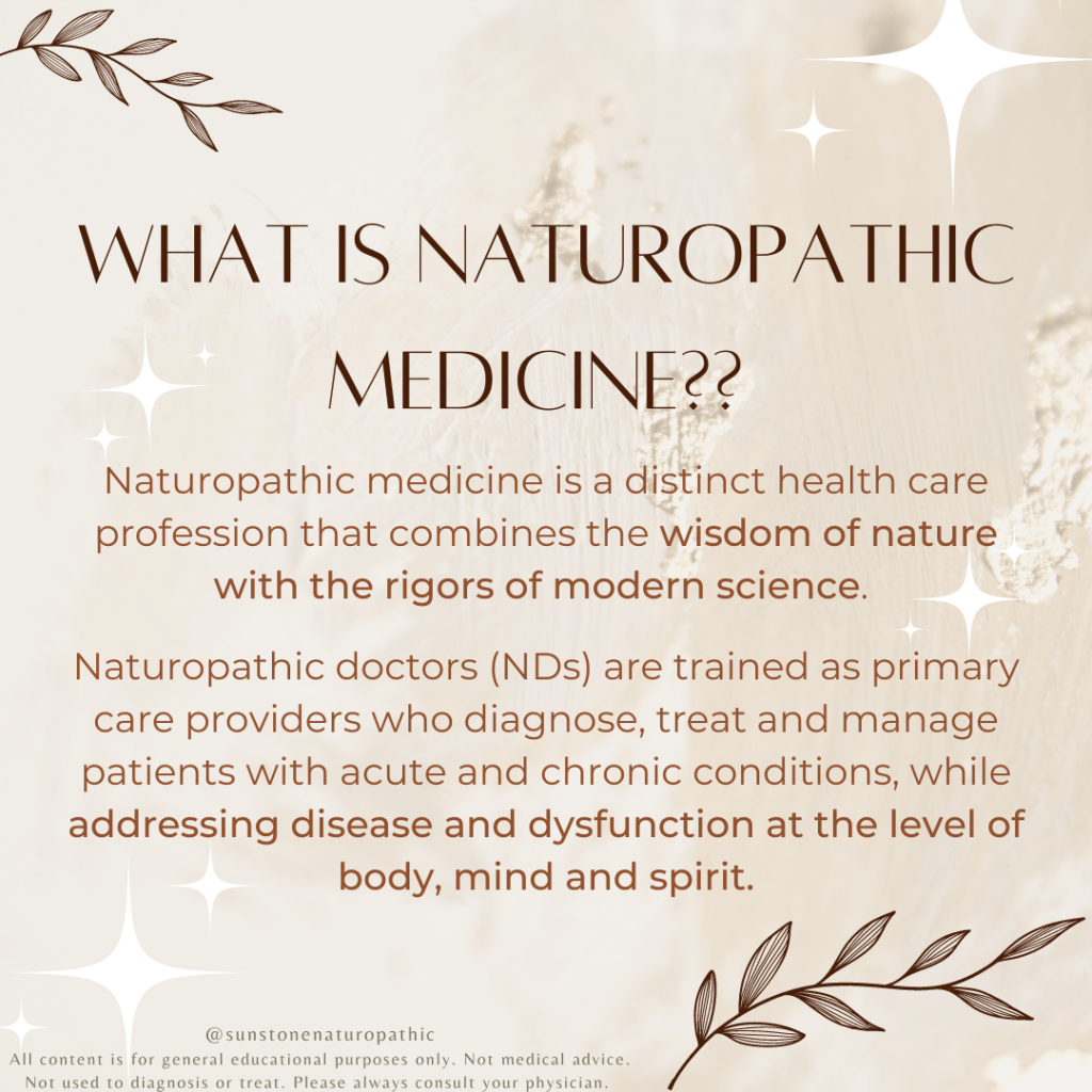 Naturopathic medicine is a distinct health care profession that combines the wisdom of nature with the rigors of modern science. Naturopathic doctors (NDs) are trained as primary care providers who diagnose, treat and manage patients with acute and chronic conditions, while addressing disease and dysfunction at the level of body, mind and spirit.